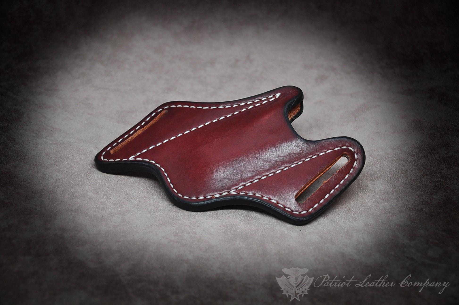 The Sentinel is a versatile and durable Multi Tool sheath with a canted design for easy access. It can be built to fit any Medium or Large frame Multi Tool and will work with belt widths up to 2". Made from 10 ounce Hermann Oak Bridle Leather, it offers superior weather resistance and durability.