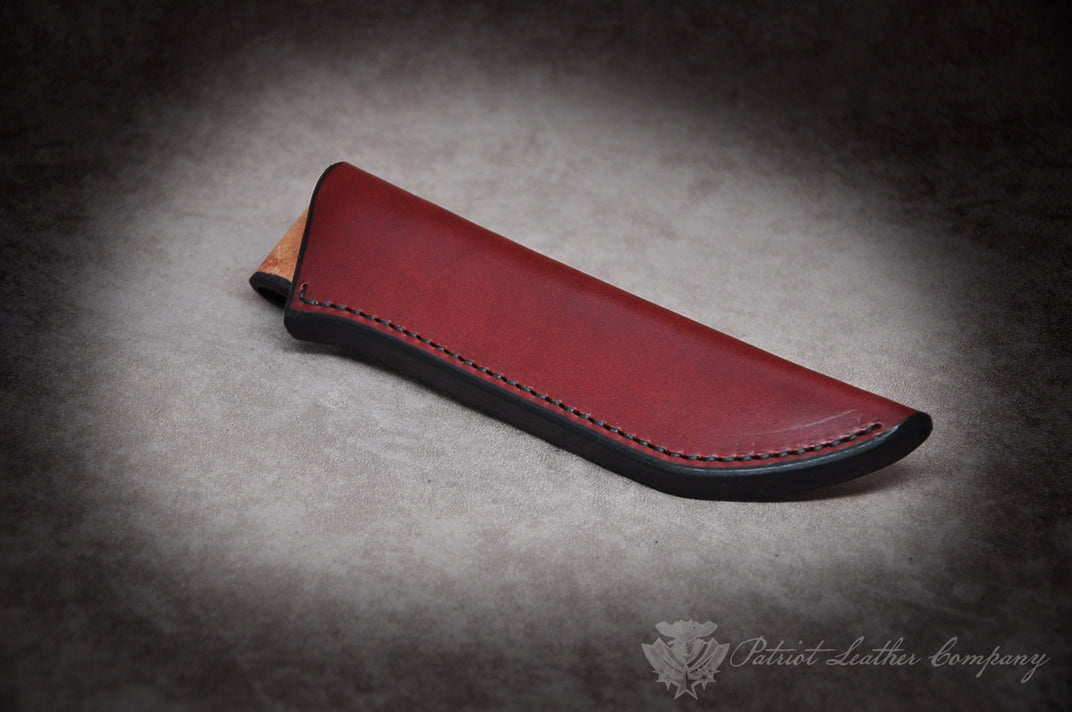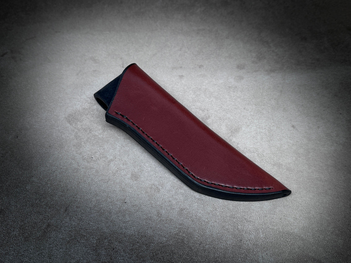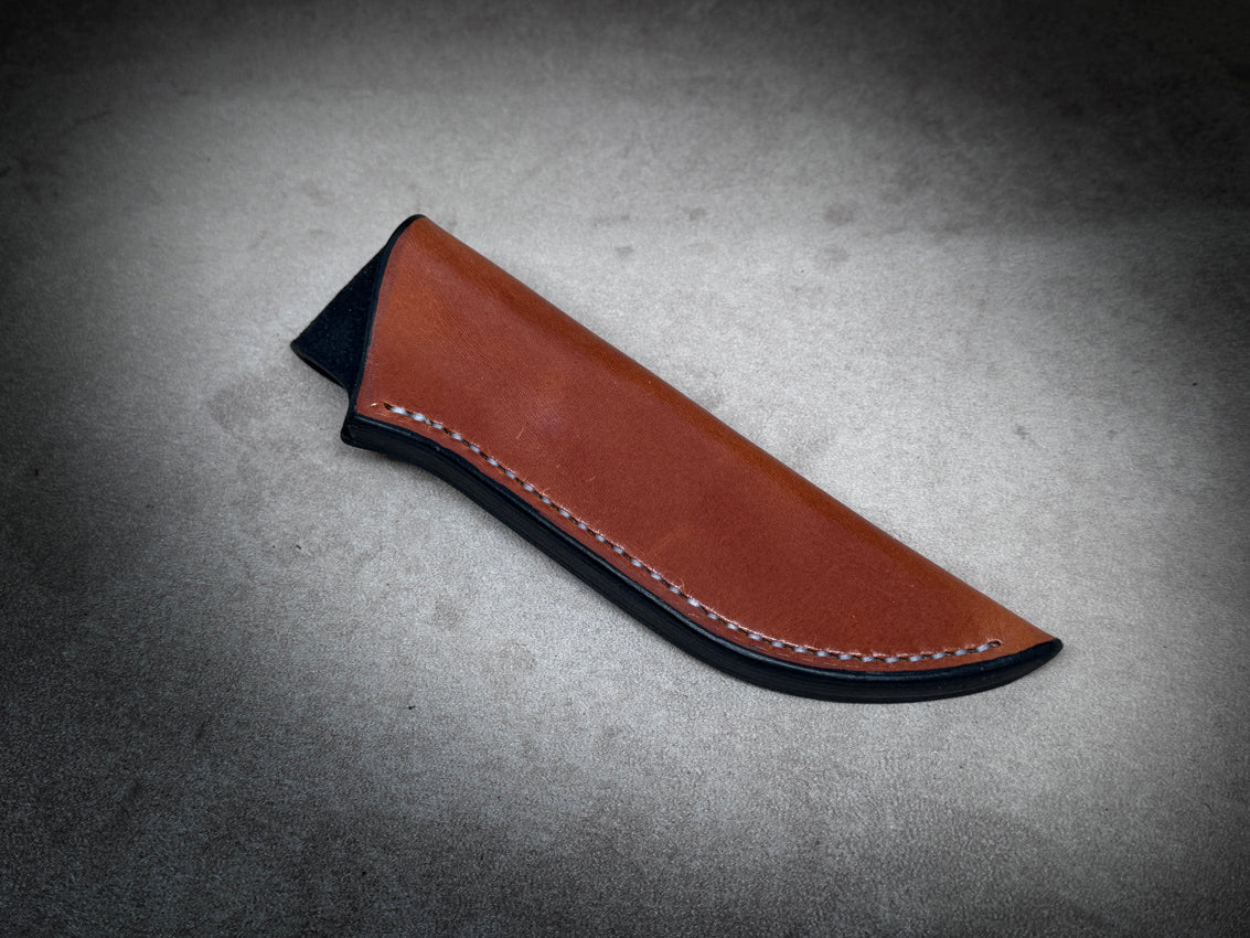 The Vagabond is a simple, streamlined sheath suitable for various small to medium-sized fixed blades without a forward guard, commonly found in the Bushcraft style. This versatile sheath is custom-made with 10 ounce Premium Hermann Oak Bridle Leather for superior weather resistance and durability. It also features military grade snaps and hardware and can accommodate belt widths up to 2". Additionally, a 3/16 x 3" Firesteel package is available for purchase.